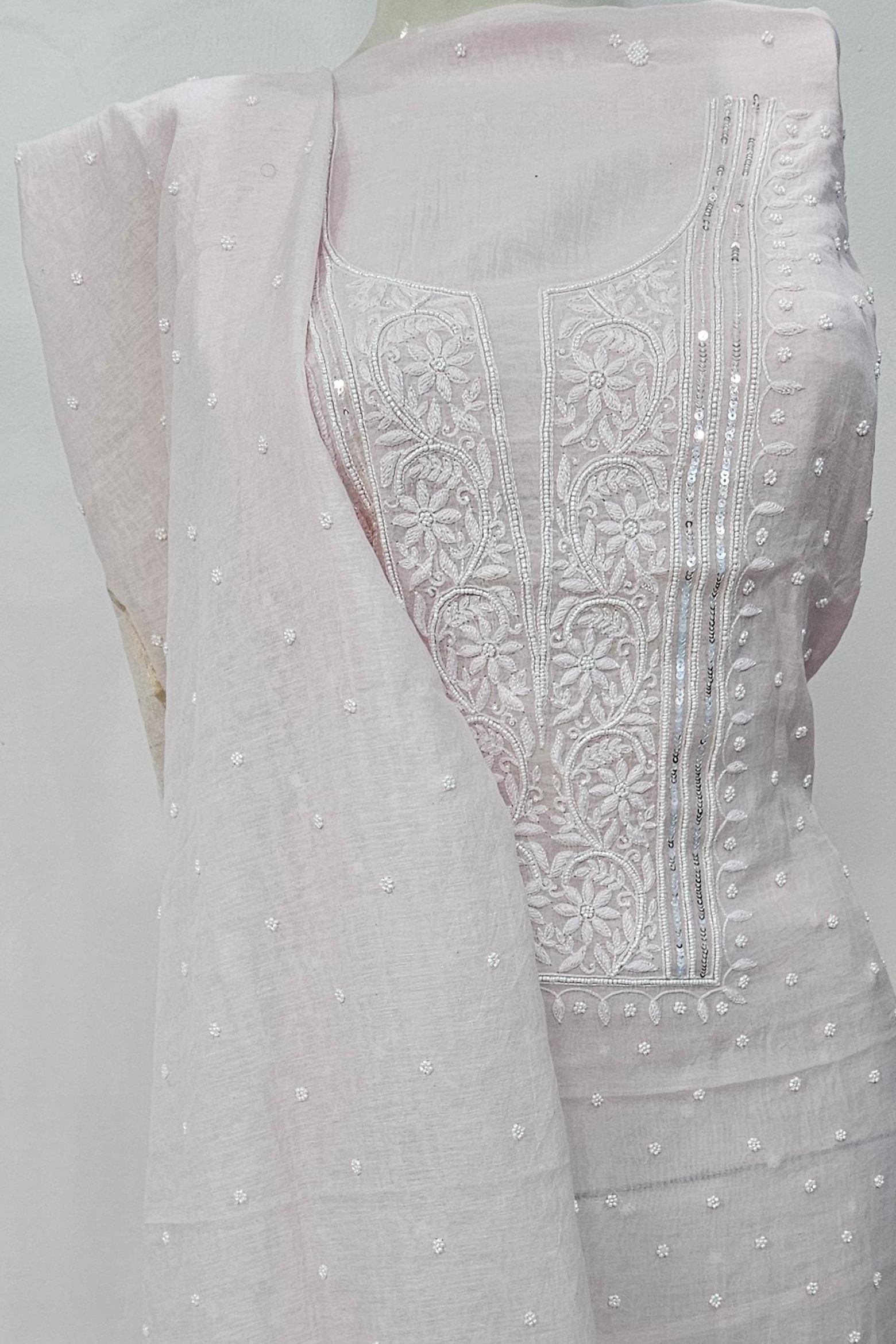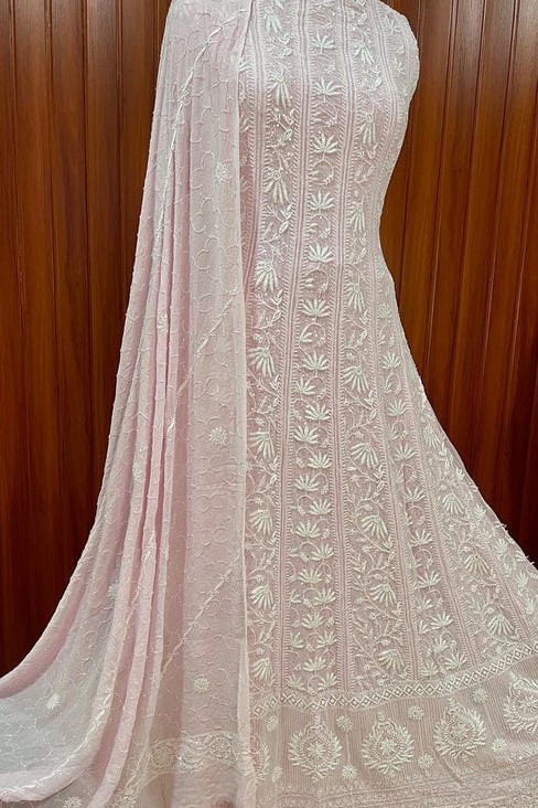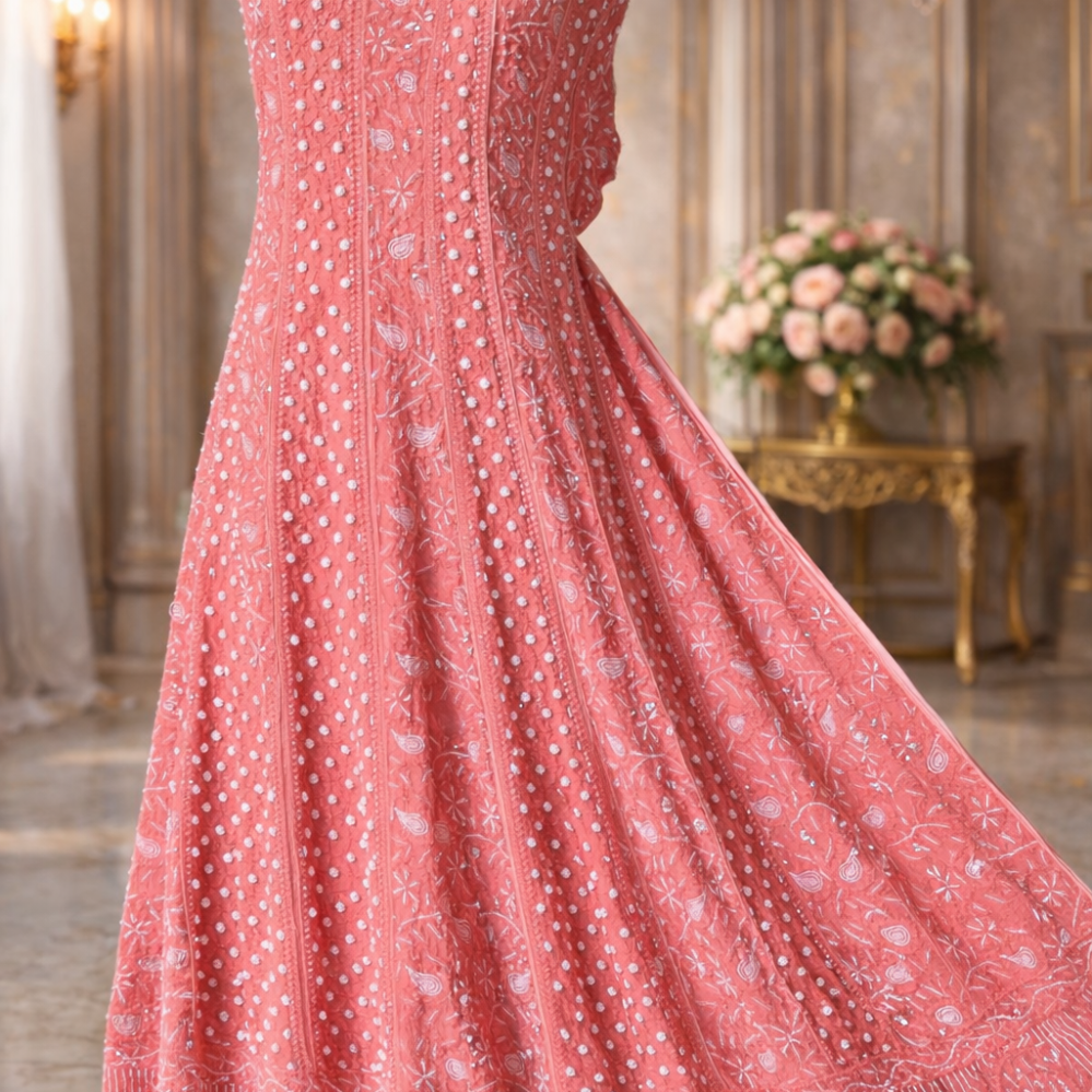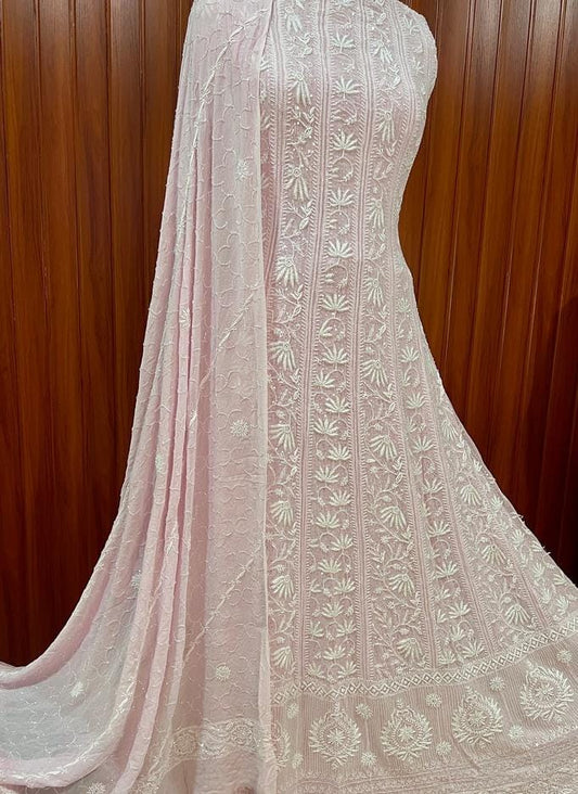 Chikankari with Cut Dana Pearl Anarkali with Dupatta (Baby Pink)
