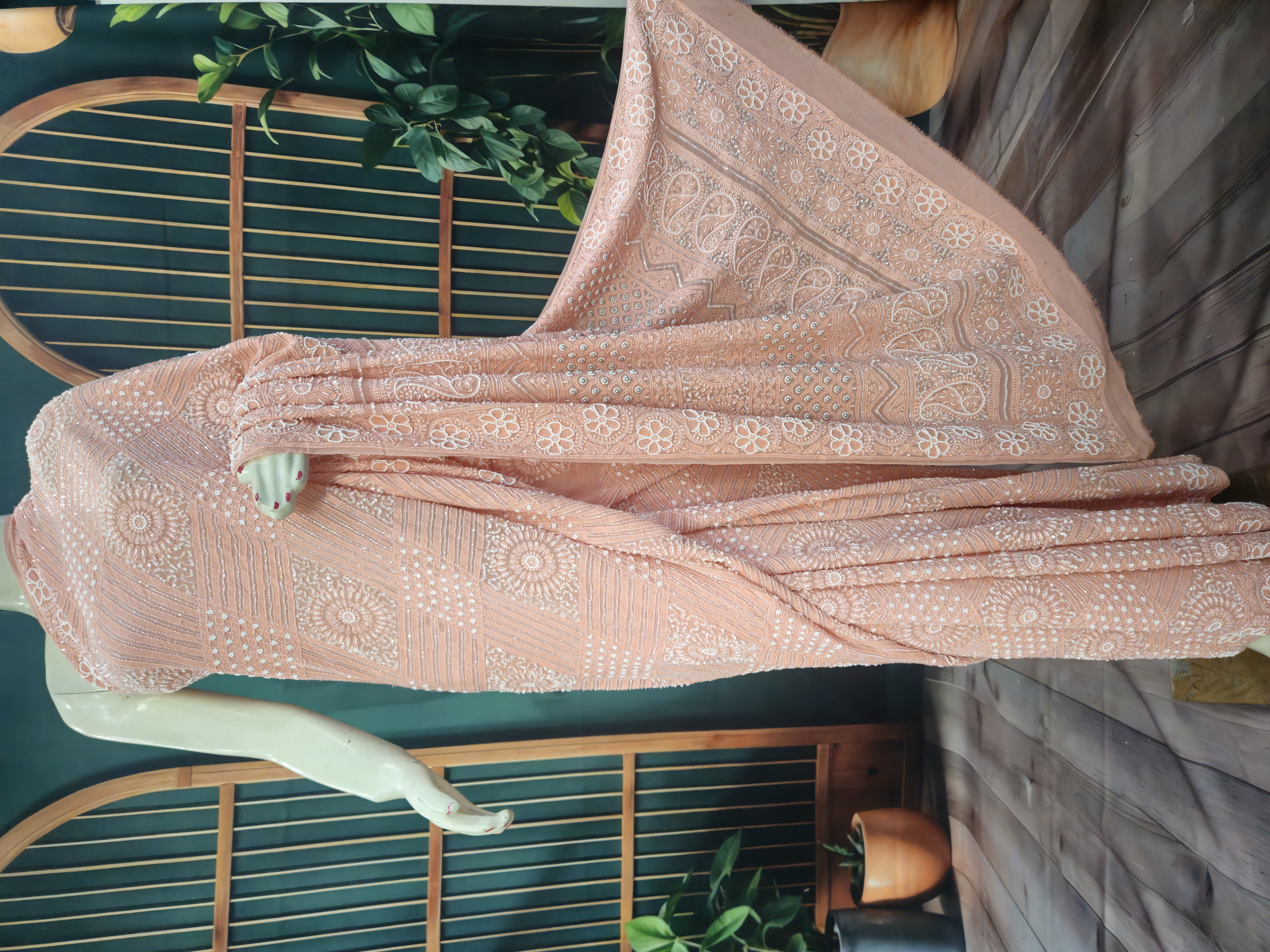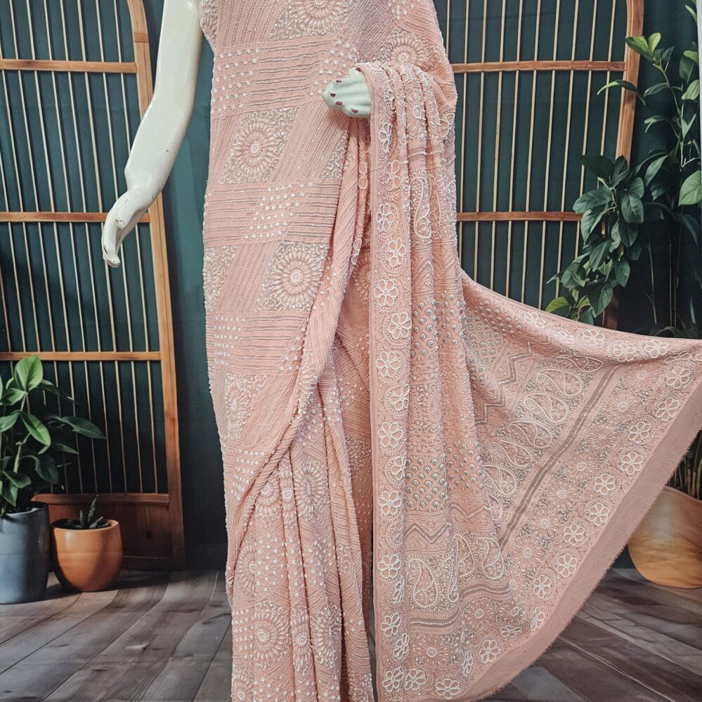Allover Mukaish badla Pure Georgette Saree (Rose Beige)