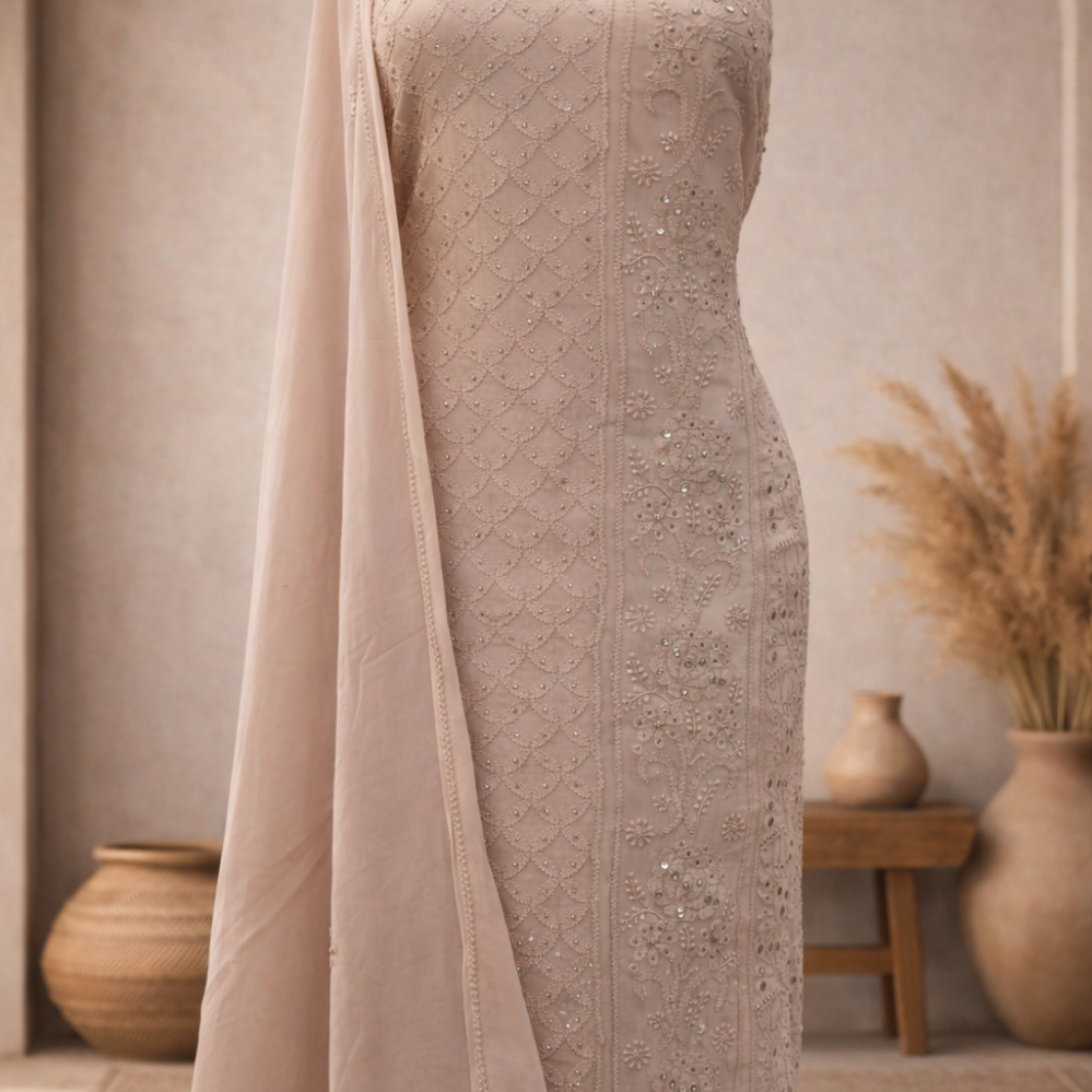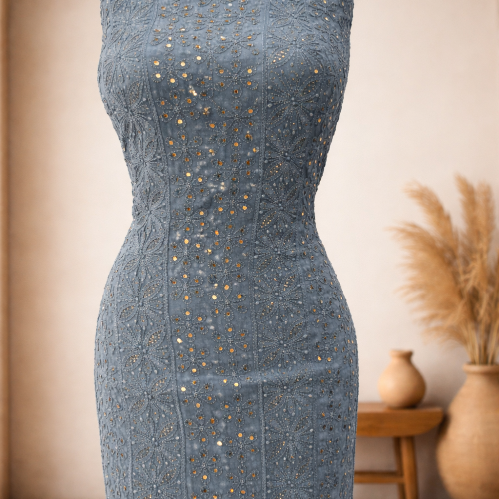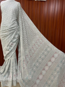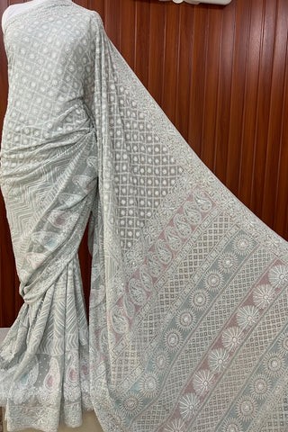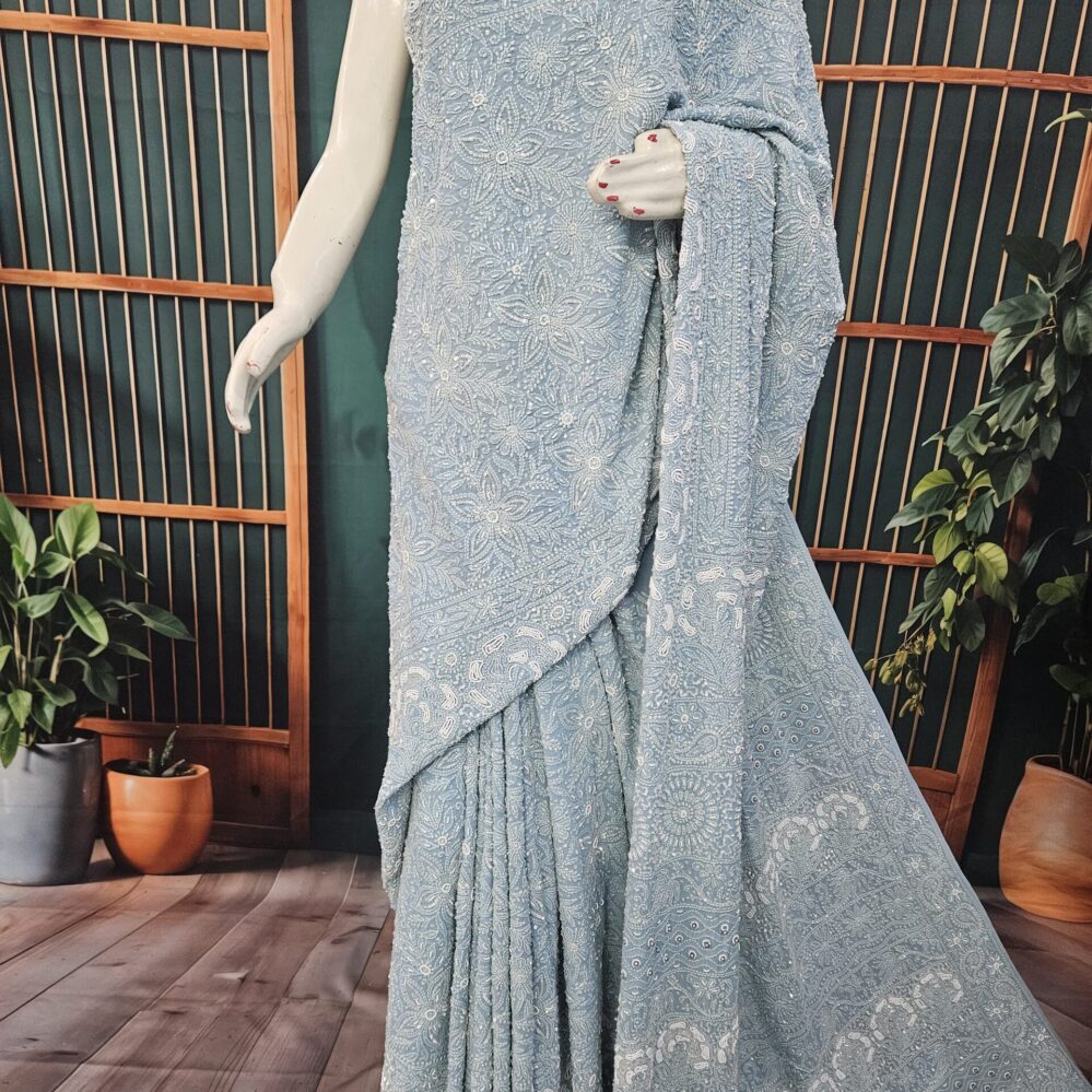 Chikankari with Moti and Sequins Saree (Grey)