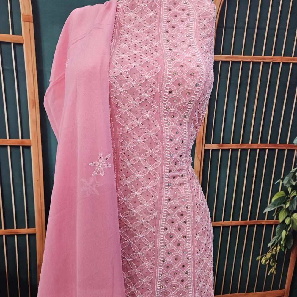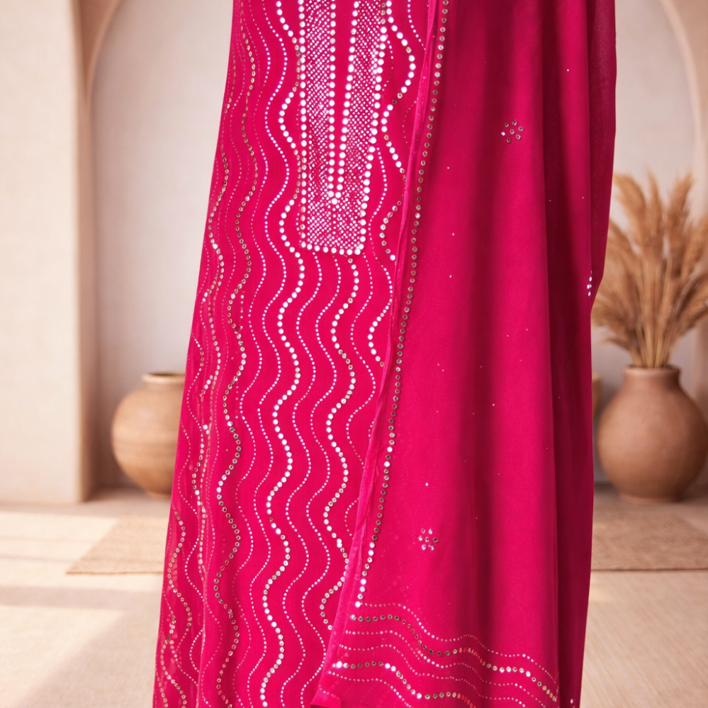 Heavy Mukaish Work Kurta and Dupatta Set (Pink)