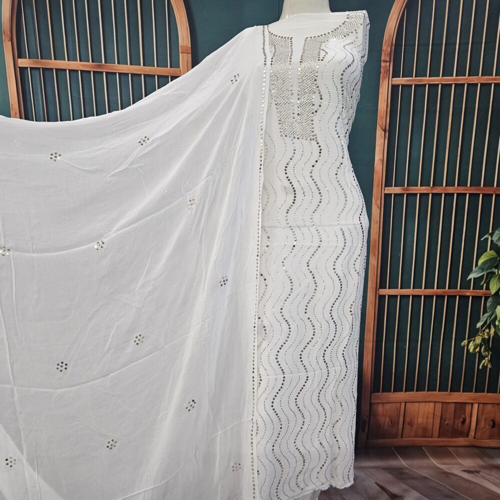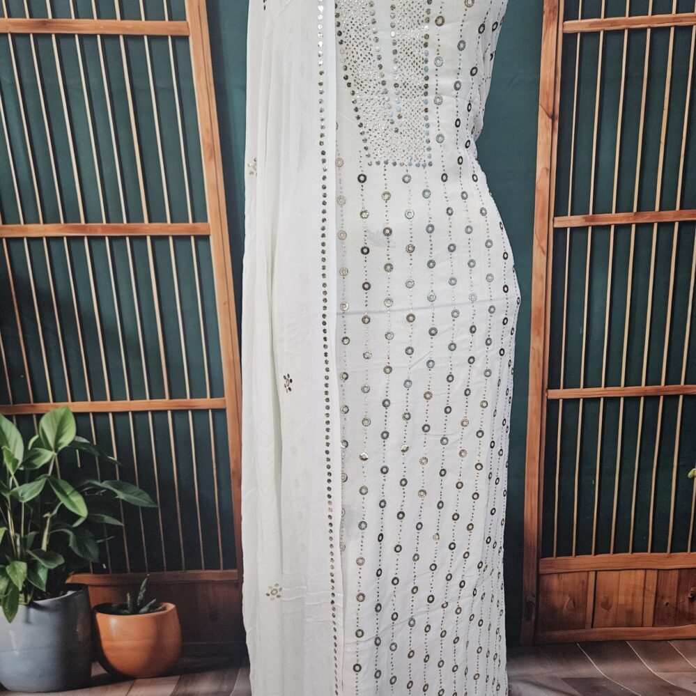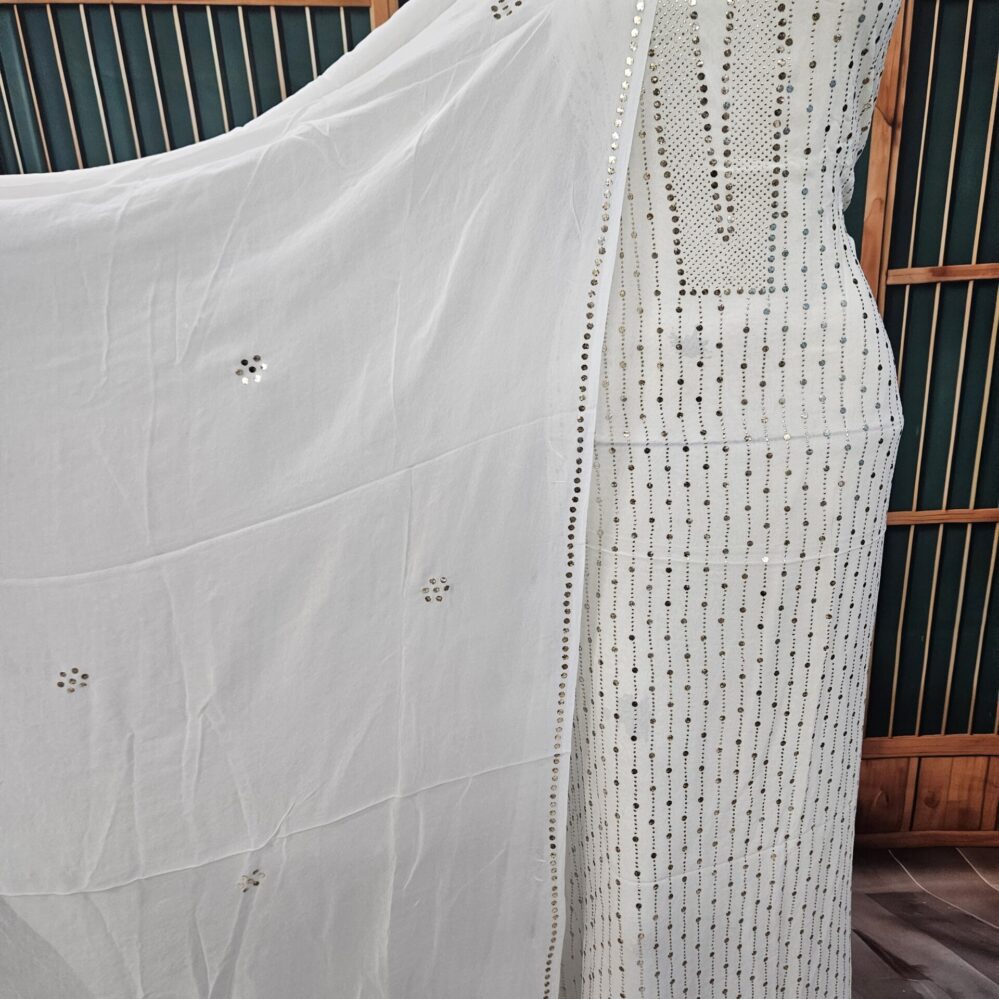 Heavy Mukaish Work Kurta and Dupatta Set (White)
