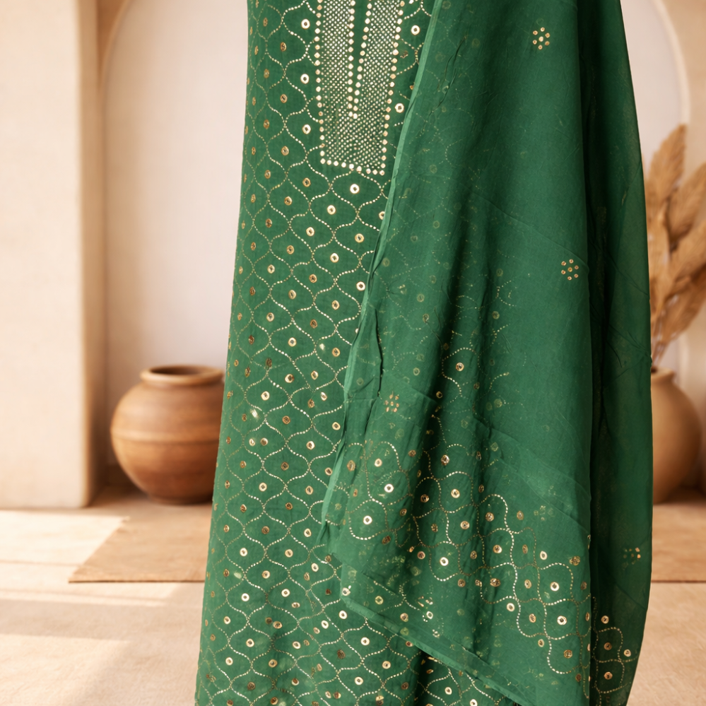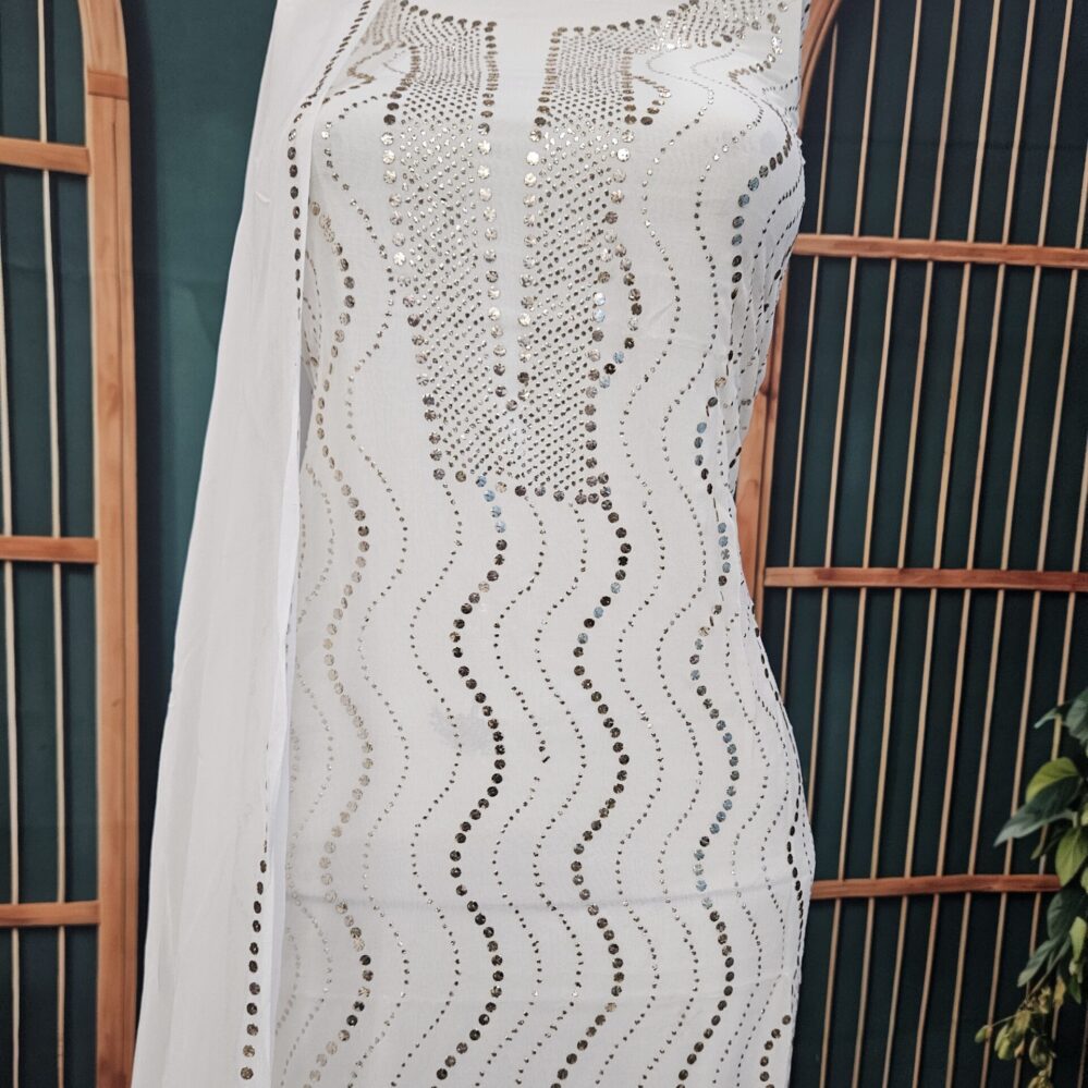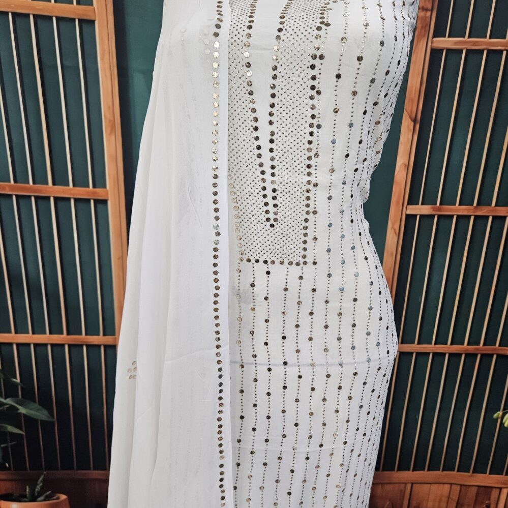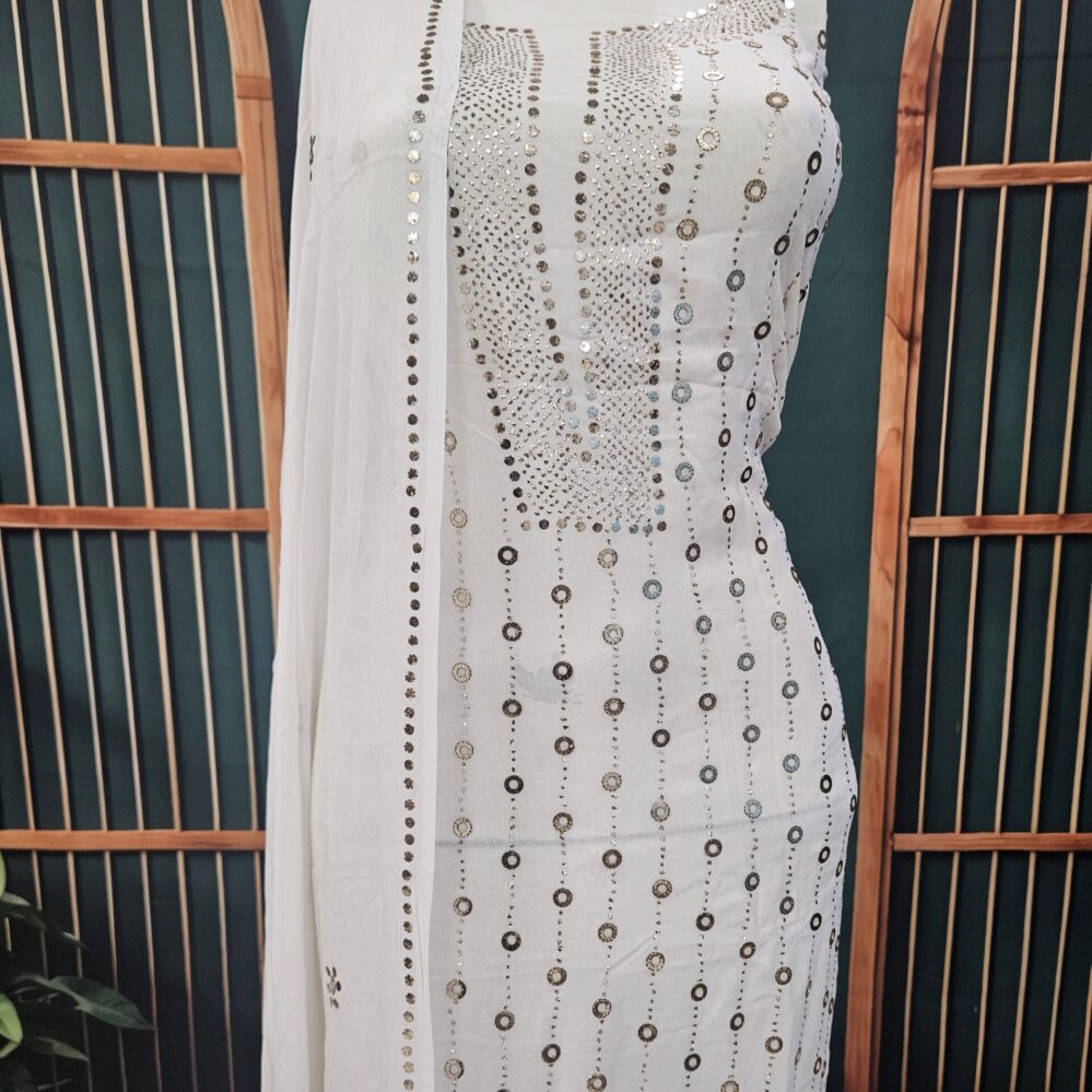 Heavy Mukaish Work Kurta and Dupatta Set (White)