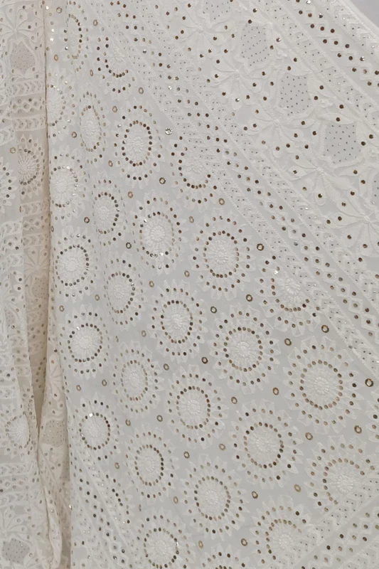 Chikankari with Cut Dana Pearl Anarkali with Dupatta (Off White)
