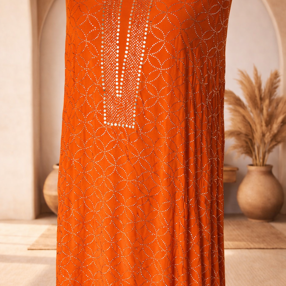 Heavy Mukaish Work Kurta and Dupatta Set (Orange)