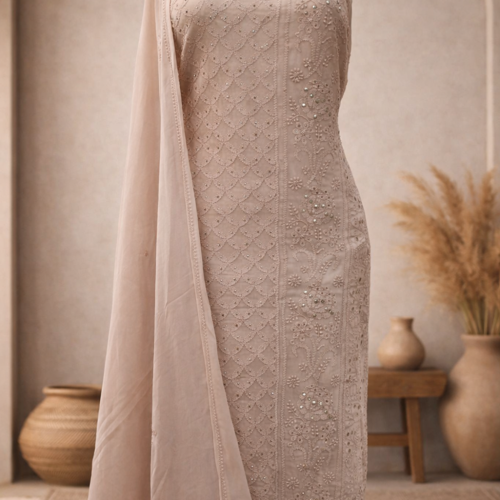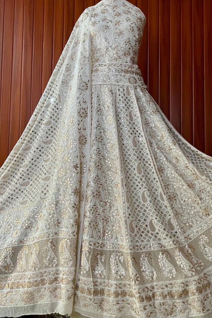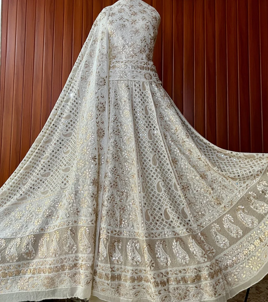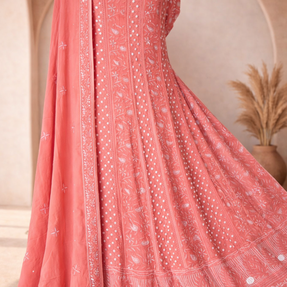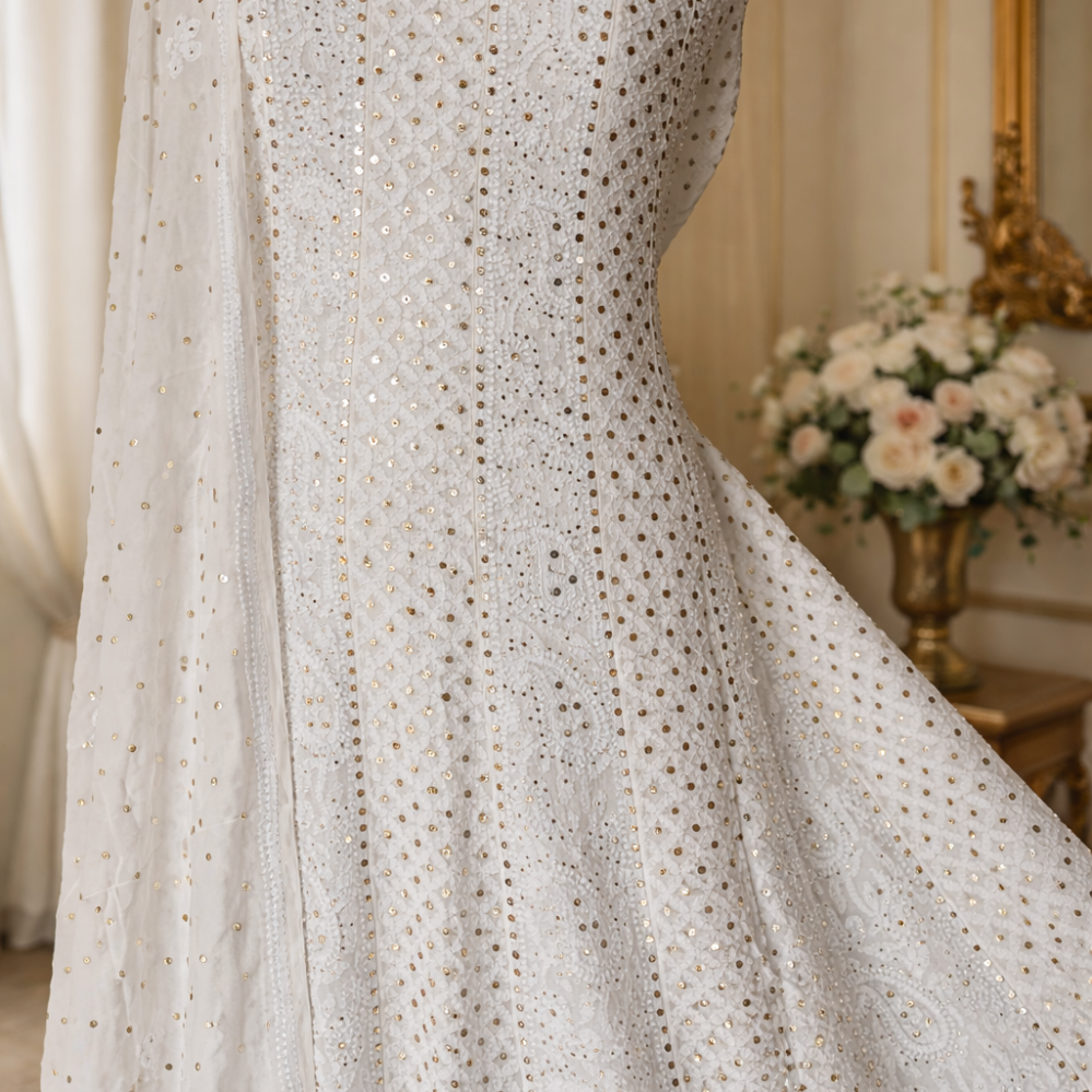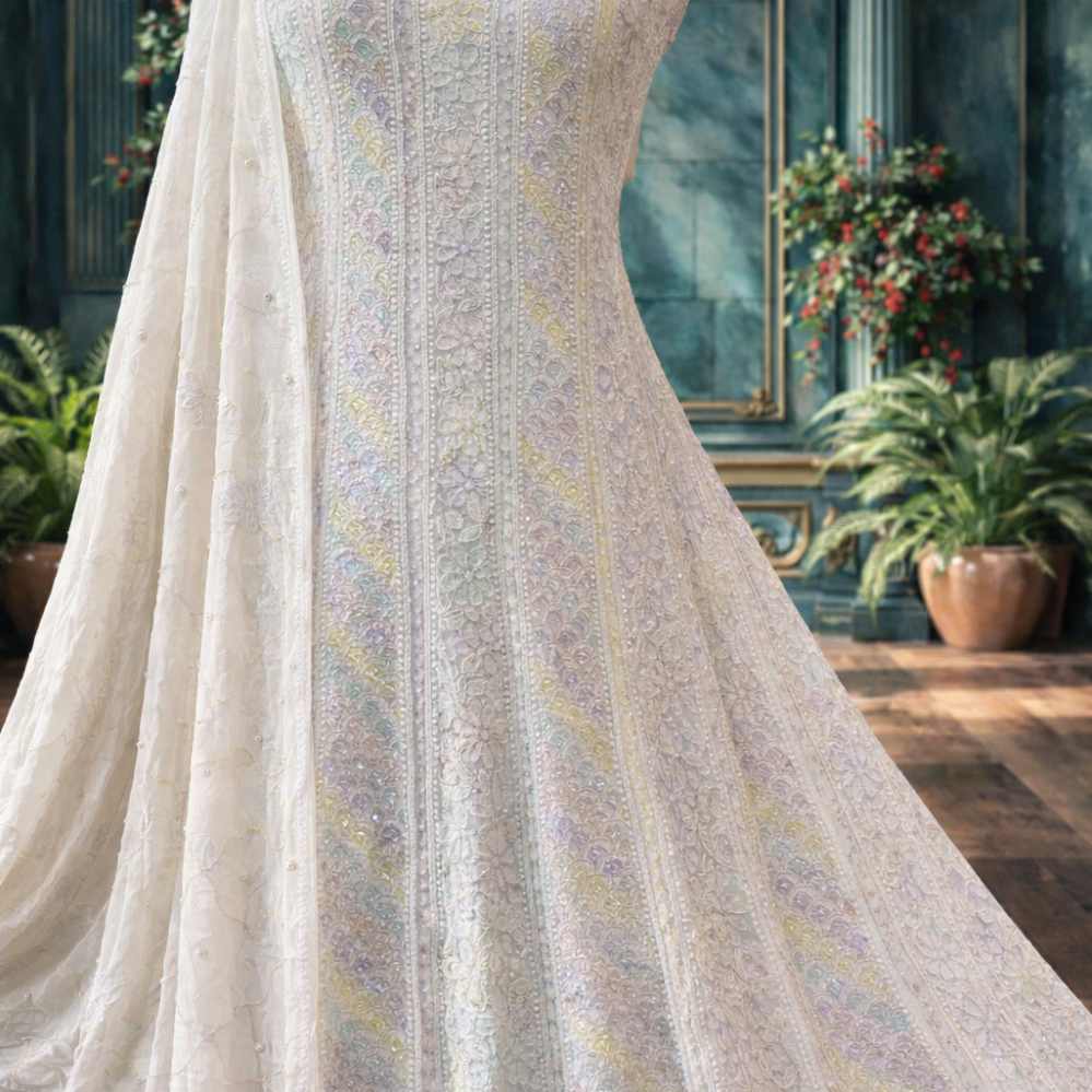 Chikankari with Cut Dana Pearl Anarkali with Dupatta (Dreamcatcher)