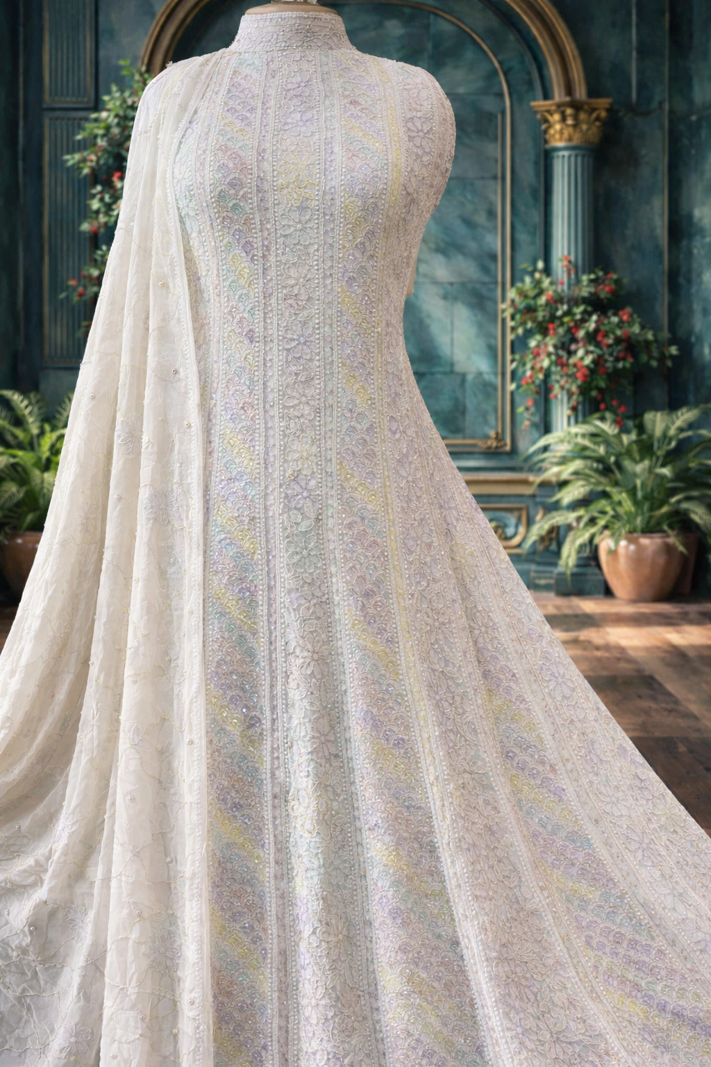 Chikankari with Cut Dana Pearl Anarkali with Dupatta (Dreamcatcher)
