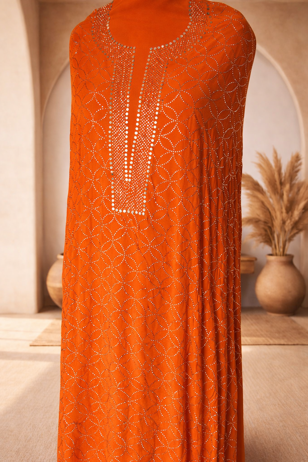 Heavy Mukaish Work Kurta and Dupatta Set (Orange)