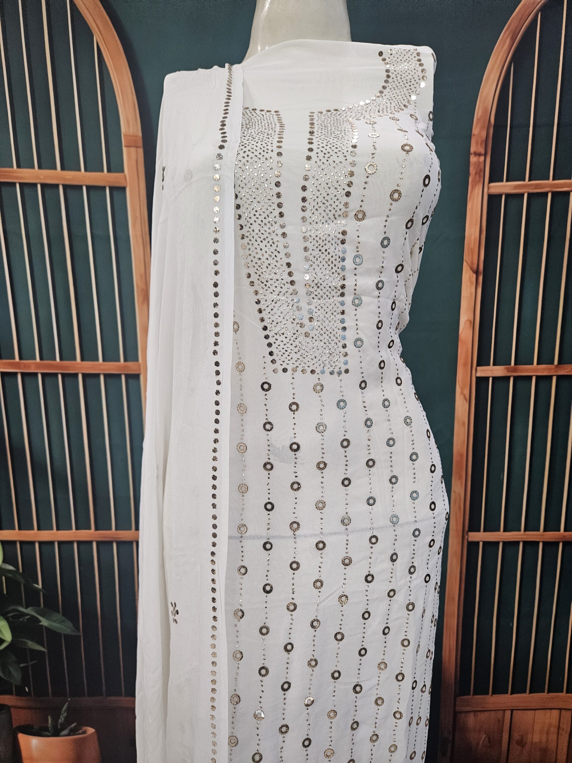 Heavy Mukaish Work Kurta and Dupatta Set (White)